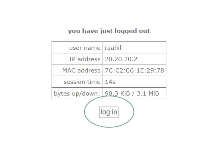 Lalu setelah layar menunjukan bahwa kita telah log off coba klik Kembali login. maka hasil yang kita dapatkan adalah kita akan terlogin otomatis tanpa bisa mengganti User Hotspot.