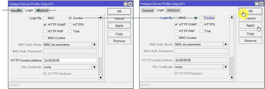 Nah pada pengaturan Server Profile pindah ke tab [login] ⯈ pastikan Cookie tidak dicentang / kosong ⯈ klik OK.
