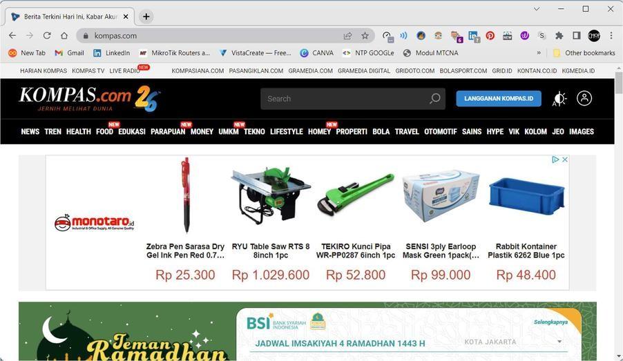 Pertama – tama pastikan web yang akan diblokir sebelum dilakukan pemblokiran masih dapat diakses, Kali ini kita mencoba untuk memblock situs”kompas.com”.