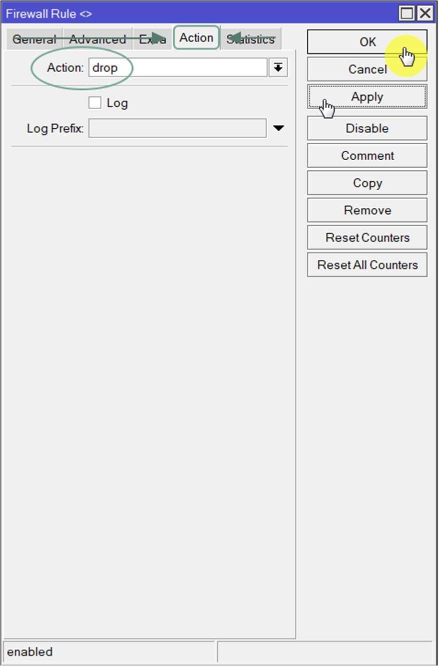 pilih daftar yang sudah dibuat lalu terakhir masuk ke menu action dan pada daftar action pilih “drop” lalu klik apply lalu klik OK.