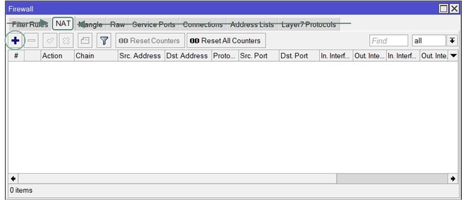 Kemudian kita lanjutkan dengan membuat Nat untuk membelokan segala trafik ke Web Proxy. Sekarang pindah ke menu IP ⯈ Firewall ⯈ masuk ke tab Nat