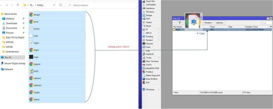 Langkah selanjutnya kita masuk ke dalam file yang baru kita Extract dan distu kita akan melihat file dengan nama “Hotspot” lalu kita klik lagi maka kita akan melihat banyak file. Sekarang Drag and Drop semua file dan masukan ke file flash yang ada pada Router kalian,