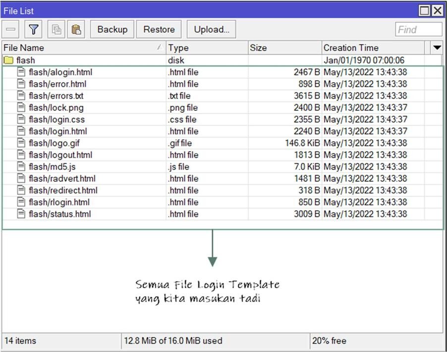 Setelah memasukan semua file Login Template ke dalam file flash di Router kita maka tampilannya akan seperti ini