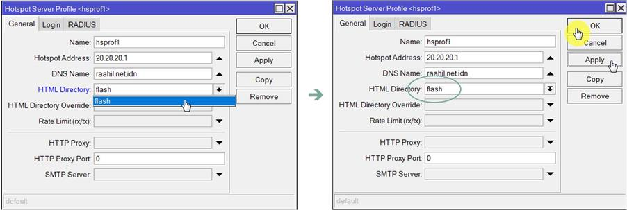 Lalu pada pengaturan server Profile pada parameter HTML Directory terapkanlah folder flash yang telah kita masukan Template Login baru (yah soalnya emang Cuma ada satu folder doang), Setelah sudah dimasukan lalu klik Apply dan OK.