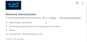 lowongan dan gaji dari network administrator (server) (per tanggal 25 juli 2024)