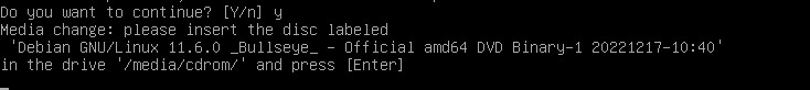Terlebih dahulu instal paket SSH dengan nama paket ssh. Jika muncul seperti pada Gambar 13.1, tekan tombol “Y” atau langsung tekan tombol “enter” untuk melanjutkan proses instalasi. Jika diminta untuk memasukkan source/CD/DVD Binary-1 seperti pada Gambar 13.2, masukkan Binary tersebut dan kemudian tekan tombol “enter” untuk melanjutkan. Tunggu sampai proses instalasi selesai.