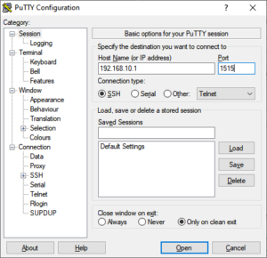 Pilih “Connection type:” nya “SSH”, kemudian klik tombol “Open”. Untuk lebih jelasnya, anda dapat melihat Gambar 13.5.