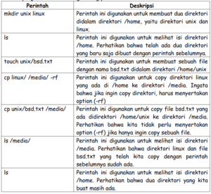 Perintah ini digunakan untuk membuat sebuah direktori. Berikut contoh penggunaan dari perintah ini.