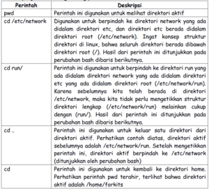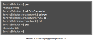 Perintah ini digunakan untuk berpindah dari direktori aktif ke direktori lainnya. Berikut contoh penggunaan perintah ini.