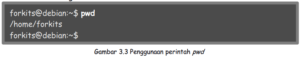 Perintah ini berfungsi untuk menunjukkan lokasi direktori dimana user sedang berada. Atau sering disebut direktori aktif.