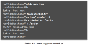 Perintah ini digunakan untuk melakukan copy file ataupun folder. Berikut contoh penggunaan dari perintah ini.