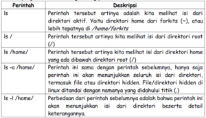 Perintah ini digunakan untuk melihat isi dari sebuah direktori. Berikut contoh dari penggunaan dari perintah ini.