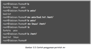 Perintah ini digunakan untuk memindahkan sebuah file ataupun direktori. Berikut contoh penggunaan dari perintah ini