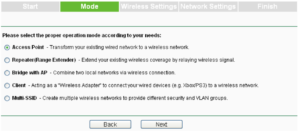 - Halaman Mode Operasi akan muncul kemudian. TL-WA901ND mendukung hingga lima mode operasi. Silakan pilih yang tepat mode operasi sesuai dengan kebutuhan Anda.
