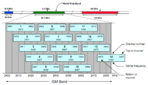 Pemahaman tentang channel sangat penting sebab hal ini berkaitan dengan kapasitas secara keseluruhan dari WLAN. Channel merupakan sebuah bagian pada pita atau band frekuensi radio. Ada sejumlah kecil bandwidth yang membawa data saat modulasi frekuensi radio berada di band sebuah frekuensi. Bagian ini sangat penting agar setiap frekuensi tidak saling bertumpuk (overlap), sehingga jaringan akan tersusun dalam urutan data paket tertentu saat dikirimkan. Infrastruktur Wi-Fi IEEE 802.11b pada dasarnya mempunyai jumlah channel yang sangat terbatas sekali. Pada jaringan yang sangat padat, tidak semua channel dapat digunakan sekaligus untuk mengurangi interferensi di infrastruktur. Berikut adalah channel pada frekuensi 2,4 MHz.